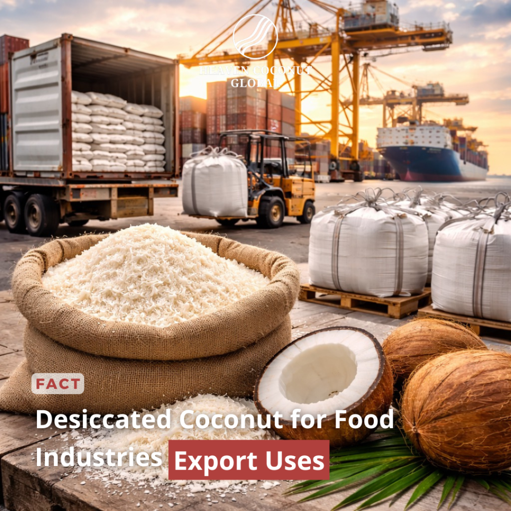 Desiccated coconut for food industries has become a vital ingredient for global food manufacturers. This product is widely used in bakery, confectionery, and plant-based food production because it offers consistent texture, natural flavor, and long shelf life for export markets.